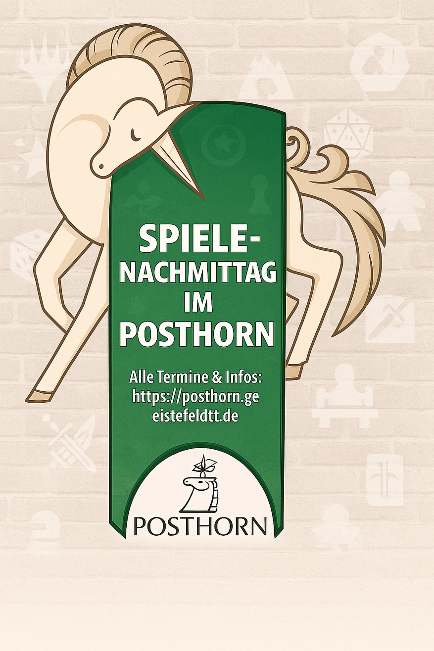 Eckersmühlener Hauptstr. 53, 91154 Roth, Germany Eckersmühlener Hauptstr. 53, 91154 Roth, Germany🎲🕹️ NEU im Posthorn Eckersmühlen: Spielenachmittag! 🕹️🎲in Zusammenarbeit mit https://www.kartenhaus.online/📅 Ab sofort jeden 2. Samstag – also immer in den geraden Kalenderwochen🕓 14:00 bis 20:00 Uhr📍 Posthorn, EckersmühlenTauche ein in die Welt der Spiele! Ob analog oder digital angehaucht – bei uns ist für alle was dabei:🎯 Brettspiele & Kartenspiele🔥 Trading Card Games wie Magic: […]